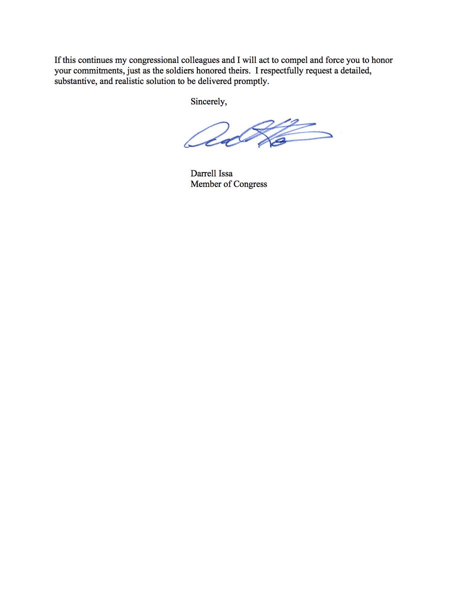 Rep. Issa, our men & woman in uniform depend on your support everyday.