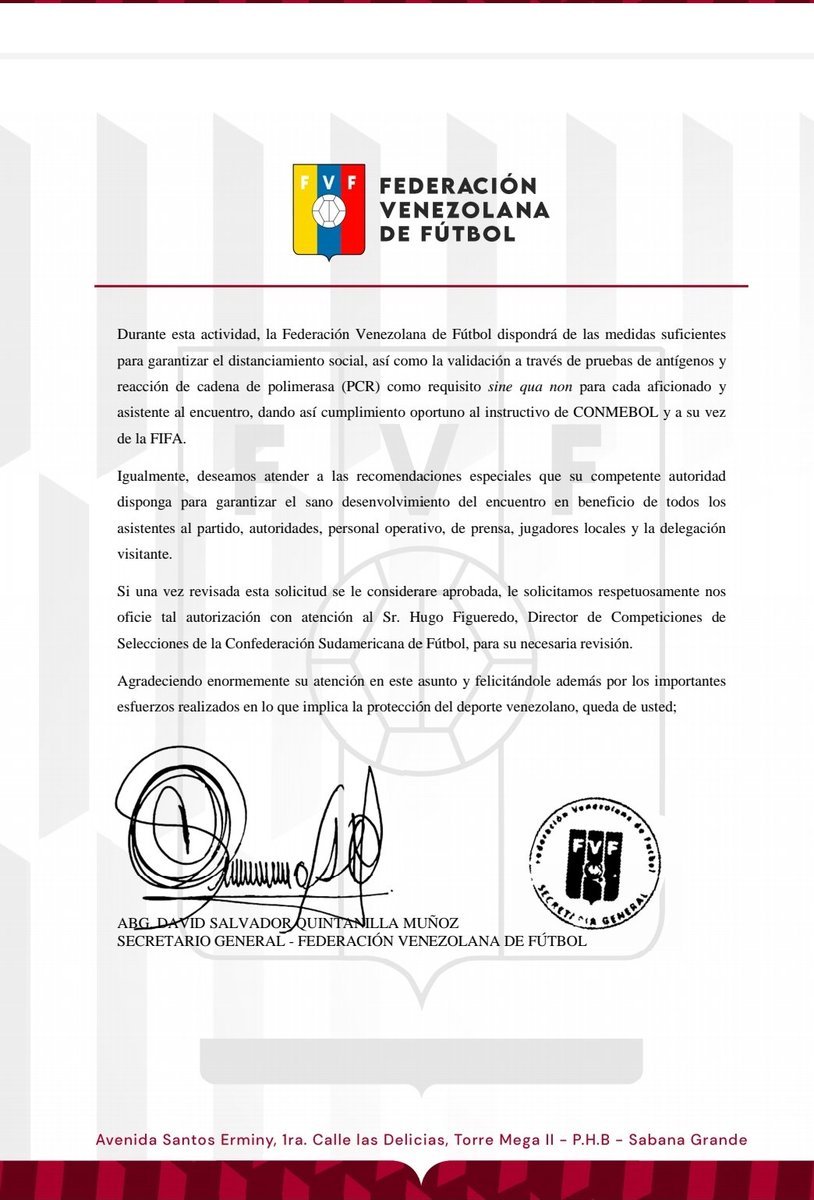 Comisión Presidencial para el Control y la Prevención de la COVID-19 aprobó el ingreso de 6000 asistentes al juego de eliminatorias sudamericanas entre la Vinotinto y Argentina en el estadio Olímpico de la UCV. Los espectadores deberán presentar pruebas de antígenos y PCR.pic.twitter.com/23DzqjdCBc