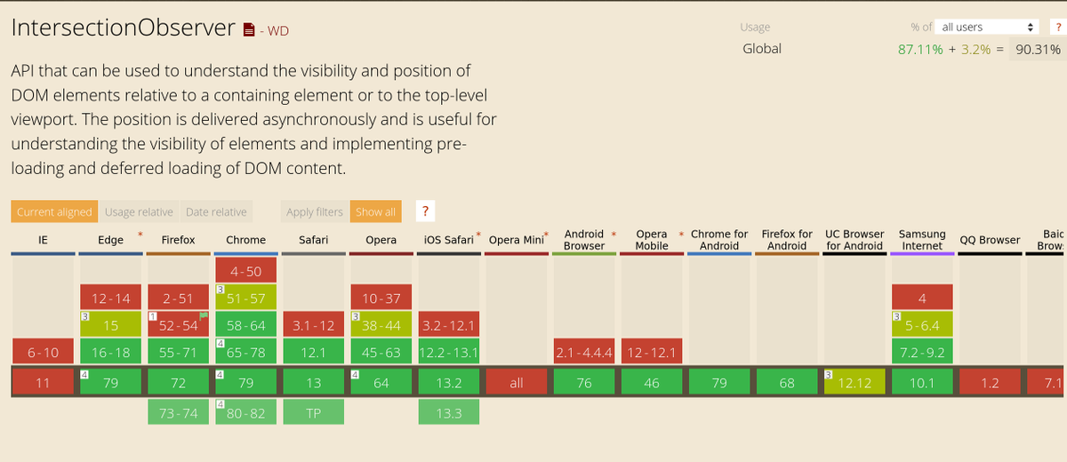 What new version? IO support is great across browsers https://caniuse.com/#feat=intersectionobserver …pic.twitter.com/cmOheJhKUK