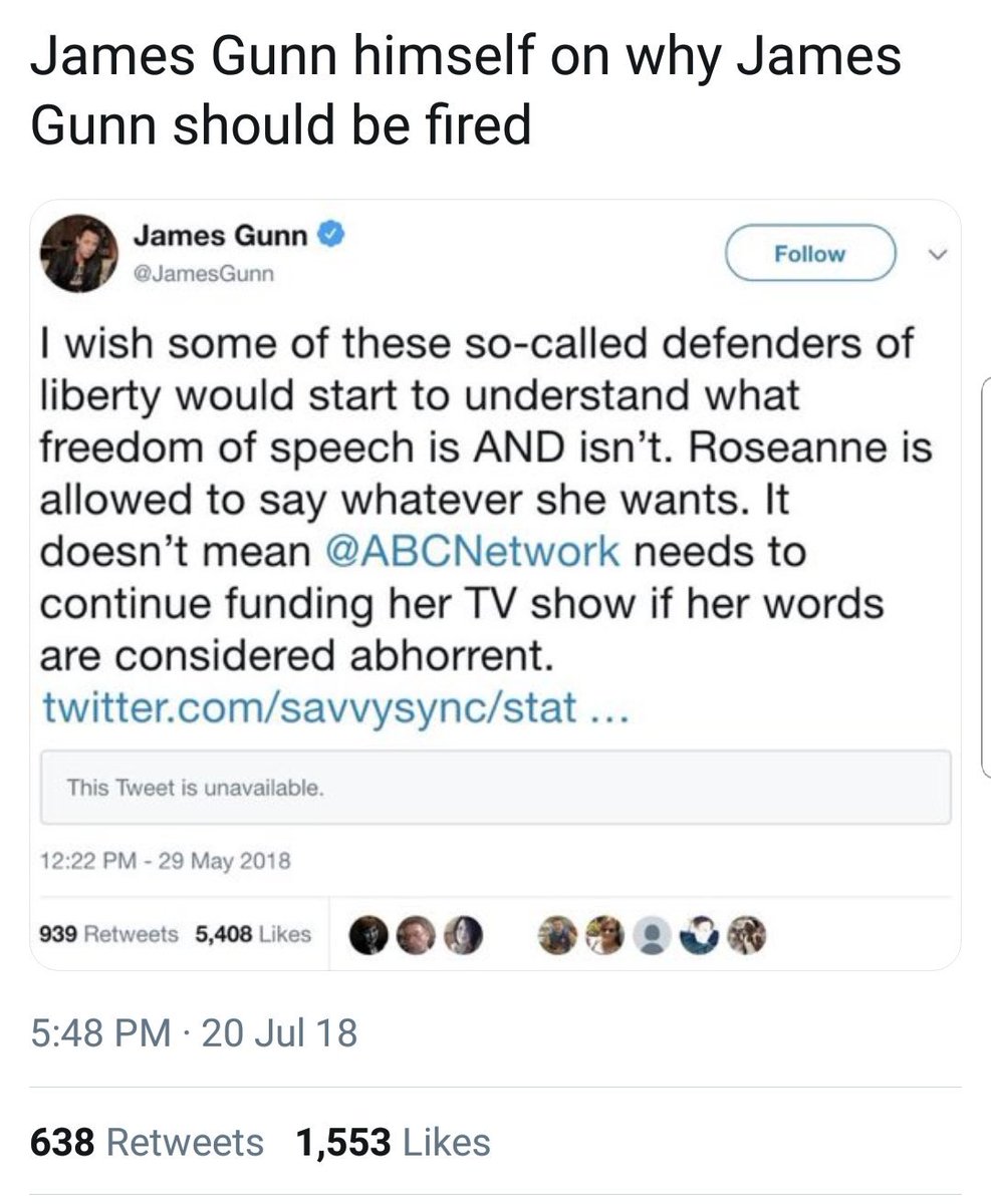Gunn was the victim of a neo-nazi campaign and both fell for it. I’m not pleased about this too.