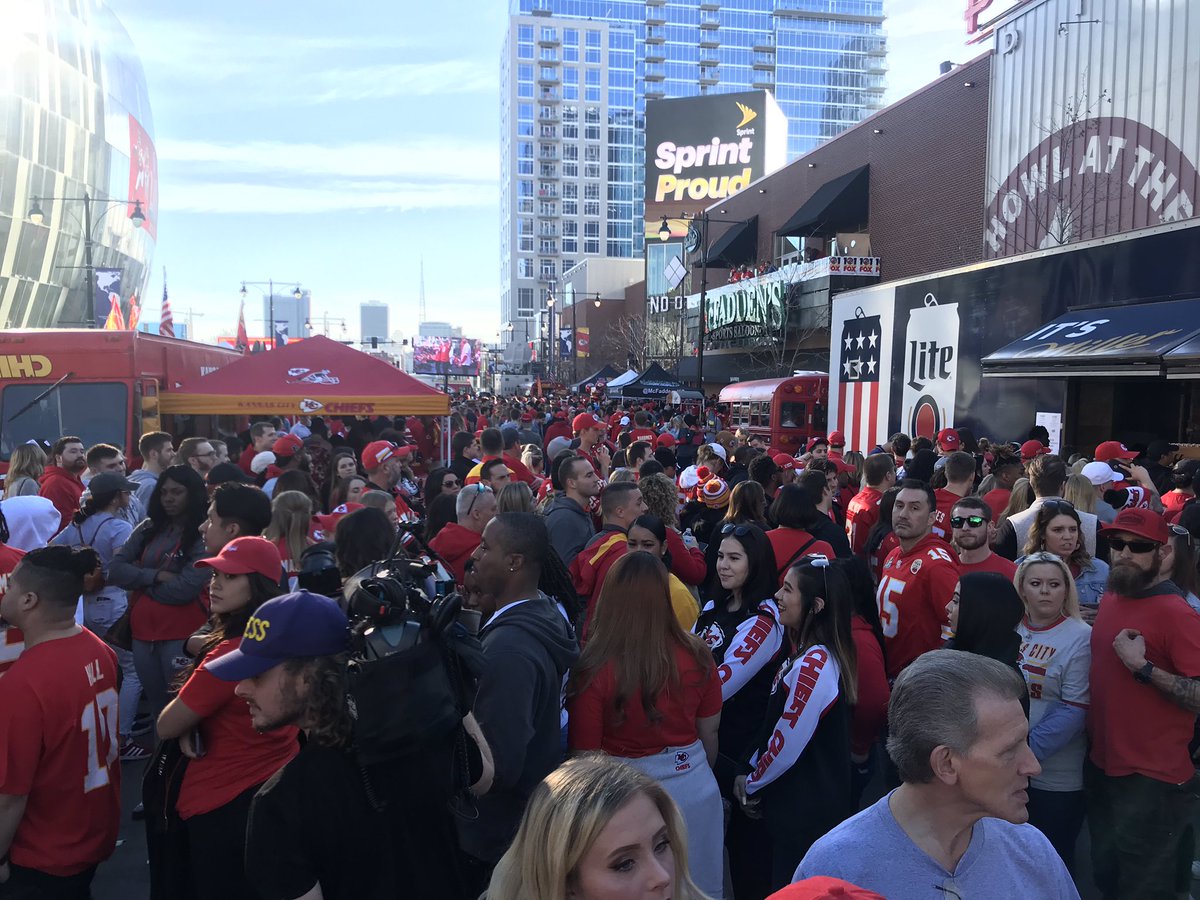 The overflow area outside Power and Light in front of Sprint Center is also full right now and we’ve spotted numerous people jumping fences to get in.