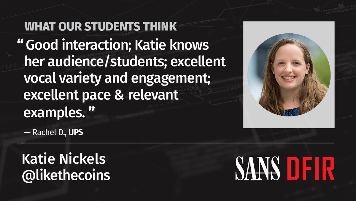 Katie is one of the best, and I'm very lucky to do my first coteach with her at the end of the month. Come join us!https://twitter.com/sansforensics/status/1224730609001680896 …