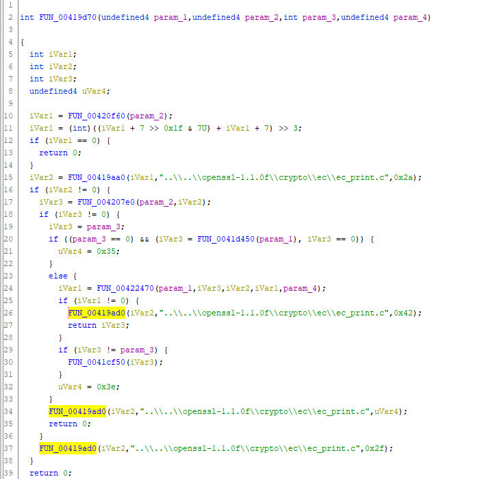 Anyone familiar with reversing binaries linked with #OpenSSL have some insight as to why I see tons of strings to source file paths like this littered in functions? Seems like odd debug strings?pic.twitter.com/DndhGCFAm5