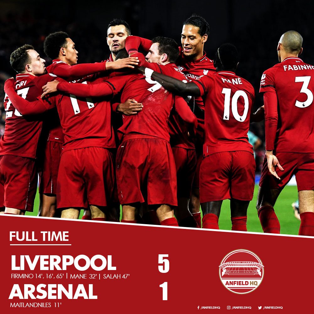 Full Time: Liverpool 5-1 Arsenal. Still unbeaten and Top of the league.