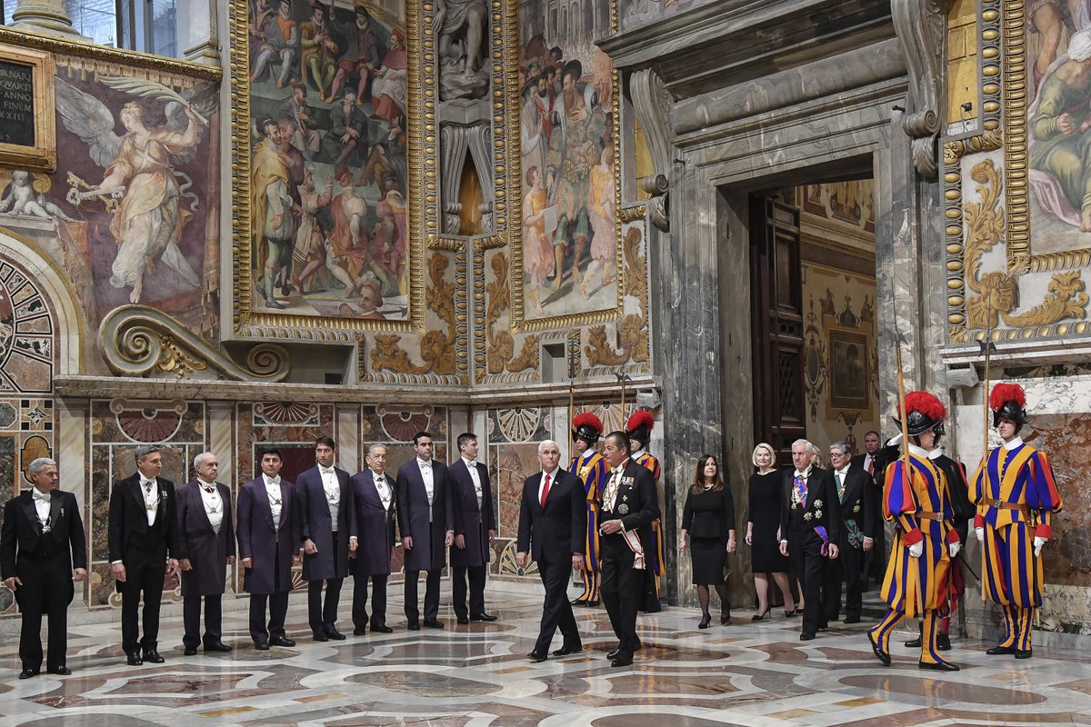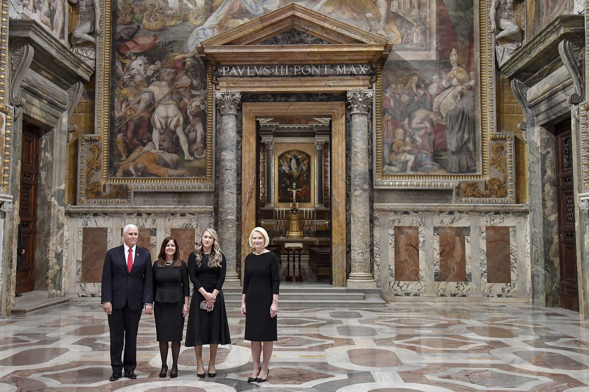 @Mike_Pence,@SecondLady, and their daughter-in-law Sarah Pence for a tour of the Vatican's Sala Regia, the Pauline Chapel, and the Sistine Chapel.#VPintheVatican#USHolySee (Alessandro Di Meo/Pool Photo via AP)pic.twitter.com/TjLSz5hhJQ