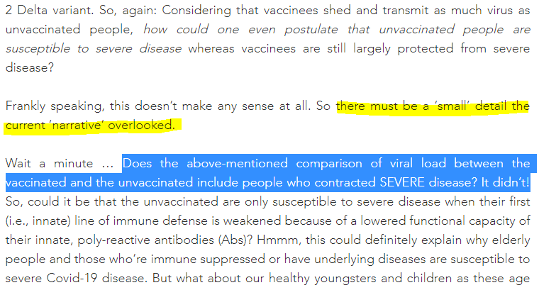 "Considering that vaccinees shed and transmit as much virus as unvaccinated people, how could one even postulate that unvaccinated are susceptible to severe disease whereas vaccinees are still largely protected? ... this doesn’t make any sense at all." https://www.geertvandenbossche.org/post/the-unforgivable-sin … https://twitter.com/Covid19Crusher/status/1443274686947790852 …pic.twitter.com/hxPlzRxJMH