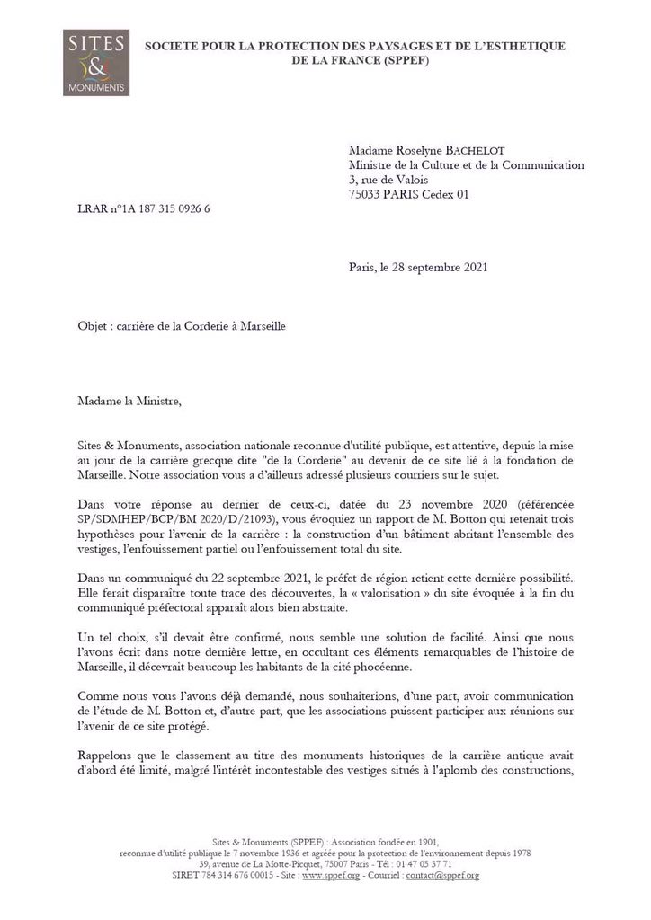 #carrière de la#Corderie à@marseille ? Notre lettre au@MinistereCC