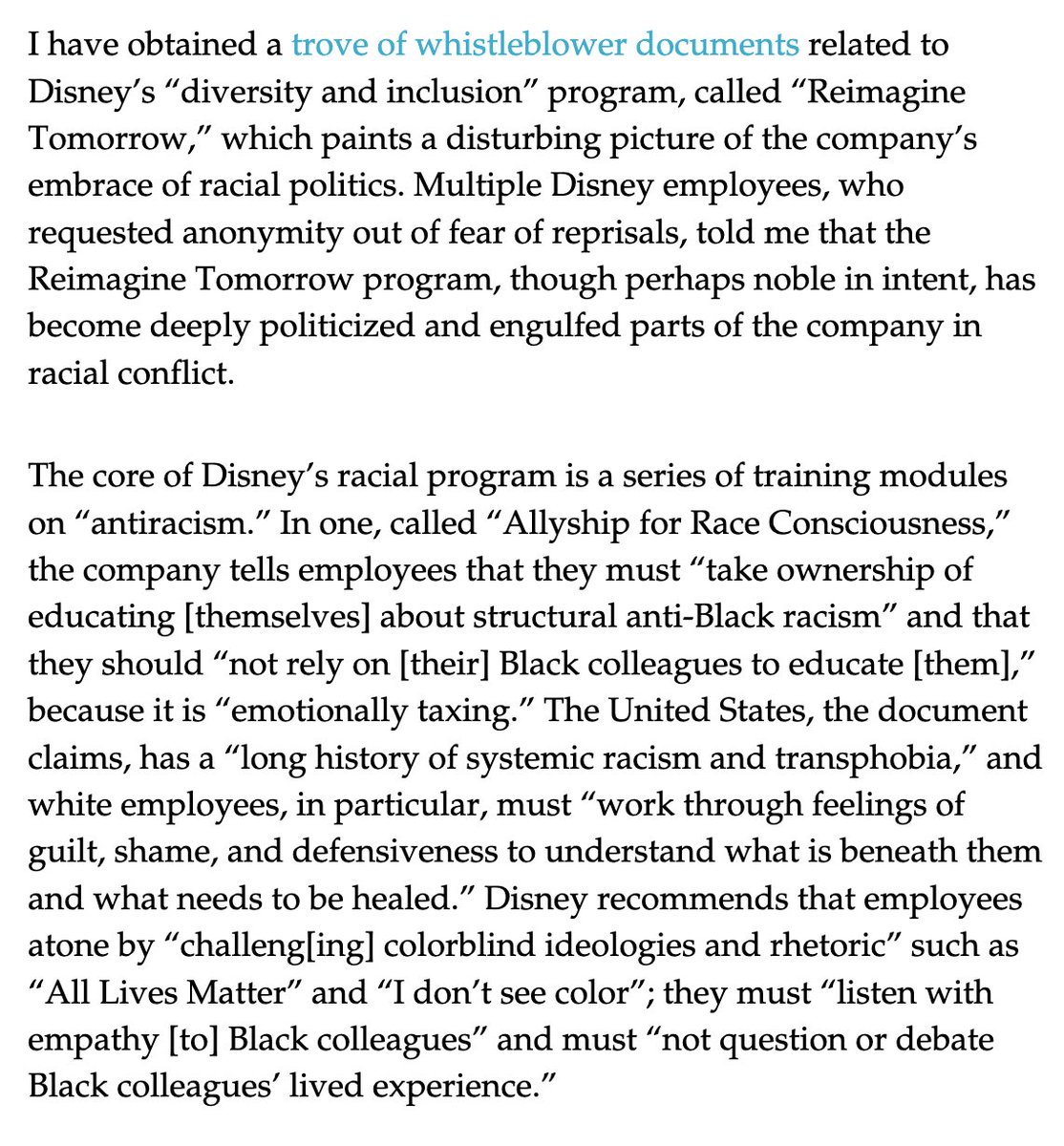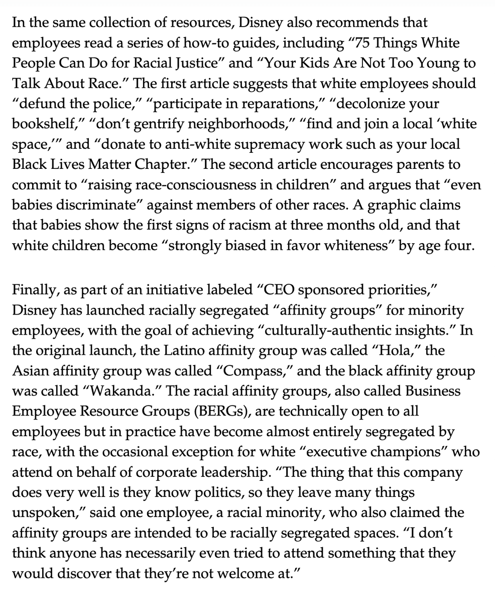 Ron DeSantis believes the government should not sexualize kindergarteners. Disney believes America is fundamentally racist, separates employees into racially-segregated groups, and encourages them to support "defund the police." Take your pick. https://www.city-journal.org/racial-politics-at-disney …pic.twitter.com/1HzCxSyCUM