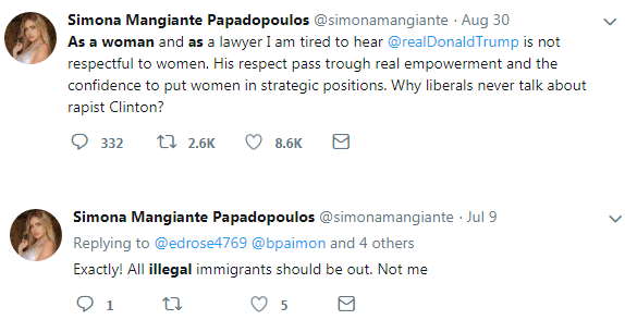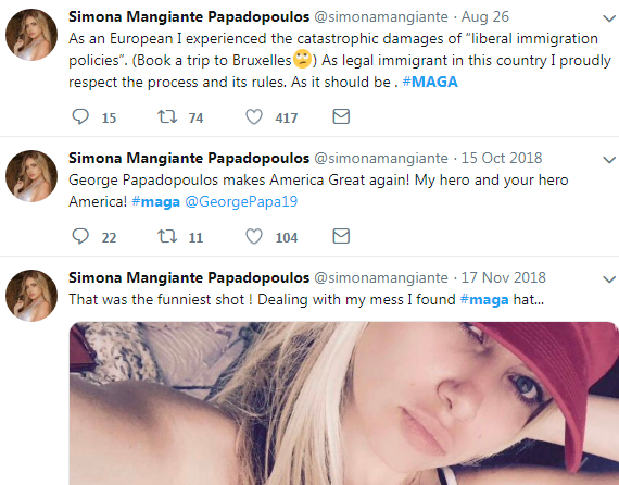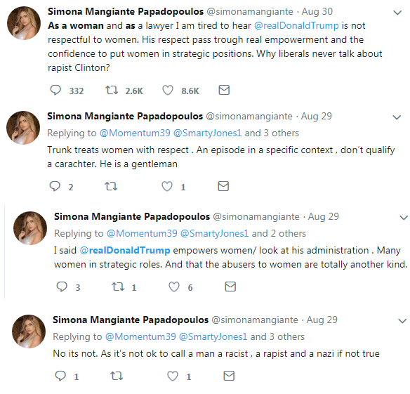@DavidSassoli I hope you don't approve of Simona Mangiante Papadopoulos. She has become a Trump Supporter and recently included you in a tweet. This woman wants to paint one image, but is another. Anyone who supports Trump is a person who lacks decency. Her tweets:pic.twitter.com/1raWwh583m