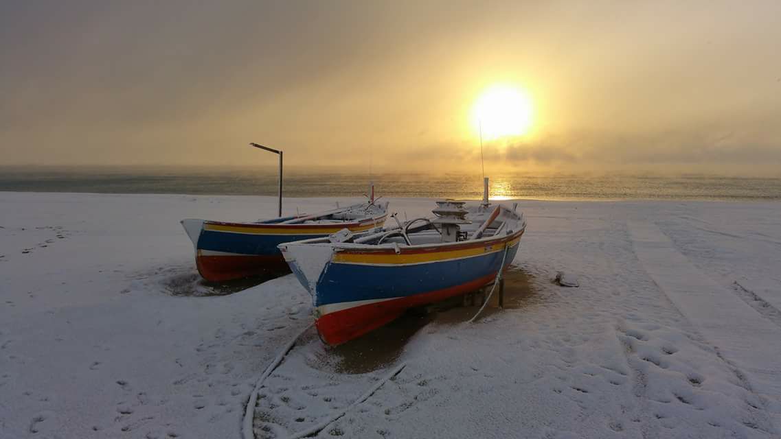 La spiaggia di Ginosa Marina, in provincia di Taranto, coperta dalla neve. (Immagine di Felice Casarola)pic.twitter.com/aWzjpevW4a