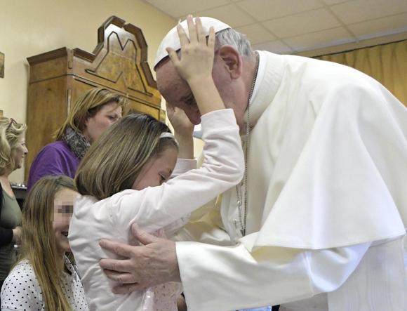 Papa Francesco visita un istituto per non vedenti. L'abbraccio con questa bimba, che gli tasta il volto con le mani: il suo modo di vederlopic.twitter.com/itHP3RLQyo