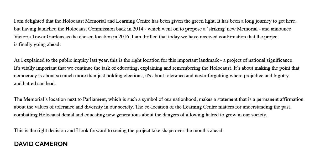 I am delighted that the Holocaust Memorial and Learning Centre has been given the green light to be built in London’s Victoria Tower Gardens. Here’s why:pic.twitter.com/WThshsrgzn