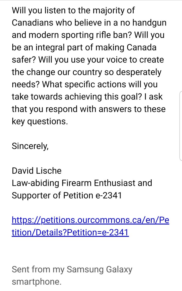 #NoGunBan e-mail today. I directed it to my MP in#Garson, the MP for#Sudbury and their two bosses in#Ottawa.@MarcSerreMP@LefebvrePaul@JustinTrudeau@BillBlair. I cc'ed the@CCFR_CCDAF@CSSA_CILA and@GlenMotz to show I support our cause.pic.twitter.com/EimXa7gsQl