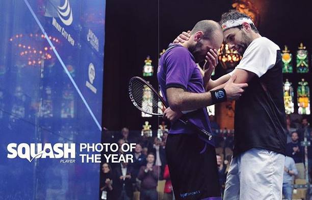 لحظه نهايه المباراه النهائيه بين الاخوين محمد ومروان الشوربجي تفوز بلقب صورة العام حسب استفتاء القراء الذى قامت به مجلة Squash Players فخر مصر