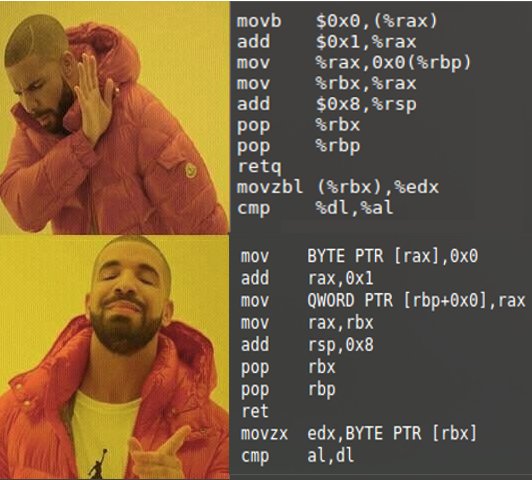 /me whenever I disassemble some code in GDB and forget to set the disassembly-language to intel.pic.twitter.com/5uadMxRhF2
