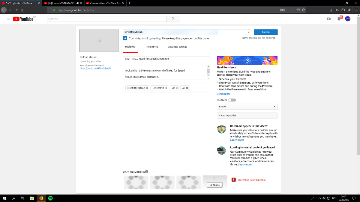 This sadly didn‘t work... although I know why, I recently deleted the draft video by an accident and this was still uploading Although thanks for the help!