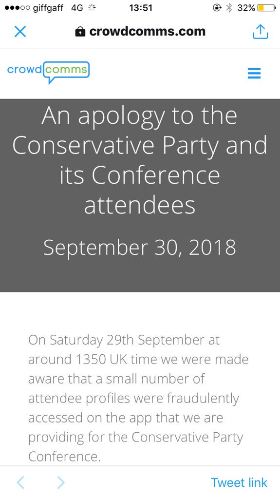 It's up again on their site: https://www.crowdcomms.com/blog/an-apology-to-the-conservative-party-and-its-conference-attendees/ …