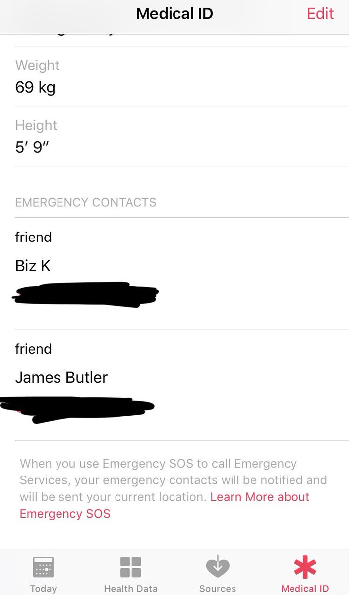 Also, if you have a serious illness, update your iphone medical card: lets people see any medical details or notes you add (inc allergies/organ donor/blood type), lists next of kin numbers, and *very cleverly*, alerts your emergency contacts & sends your location!pic.twitter.com/PoCgHvcTZg