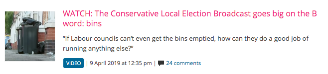 At the Tory conference last year, an official told delegates at a private training session the party was "very, very good at focusing on bins" during local elections (and not the "caring stuff") So guess what they are focusing on this year? https://www.independent.co.uk/news/uk/politics/conservative-party-leaked-recording-tory-labour-vote-tape-local-elections-a8570676.html …pic.twitter.com/WUgSjGQCBV