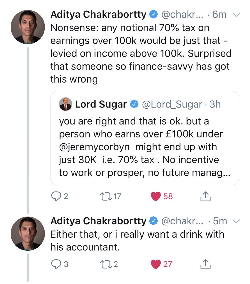 Lord Sugar is also counting the percentage he has to pay to his direct feudal liege lord Count Chocula