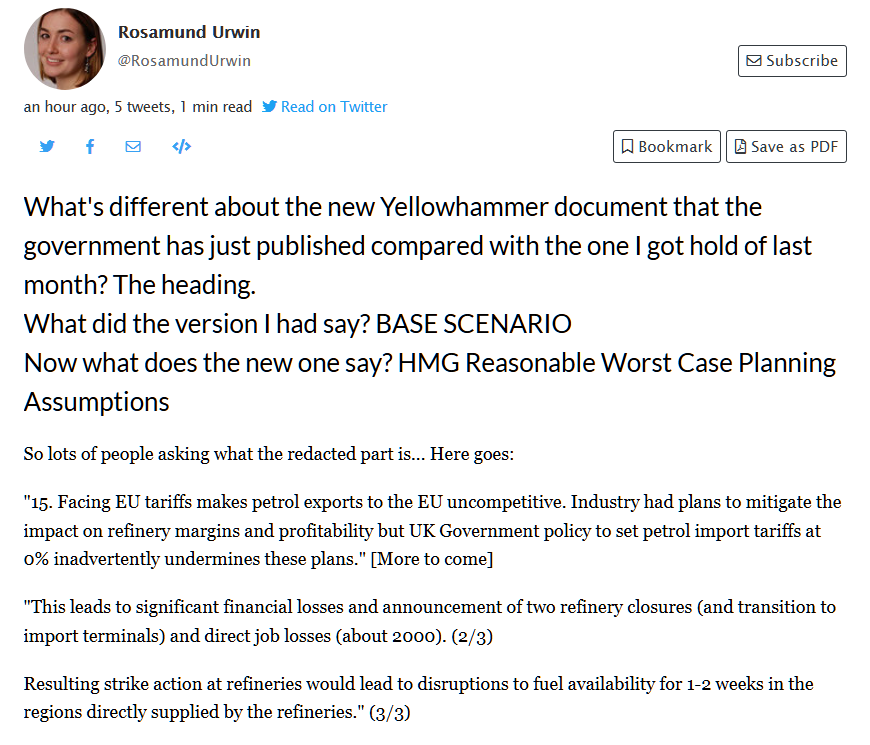 No petrol. The tariffs will make it unviable immediately ending 2000 Jobshttps://twitter.com/RosamundUrwin/status/1171873763295682560?s=19 …