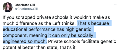 She's a follower of the PM's chief of staff Cummings obvs - eugenics is his area of "expertise".