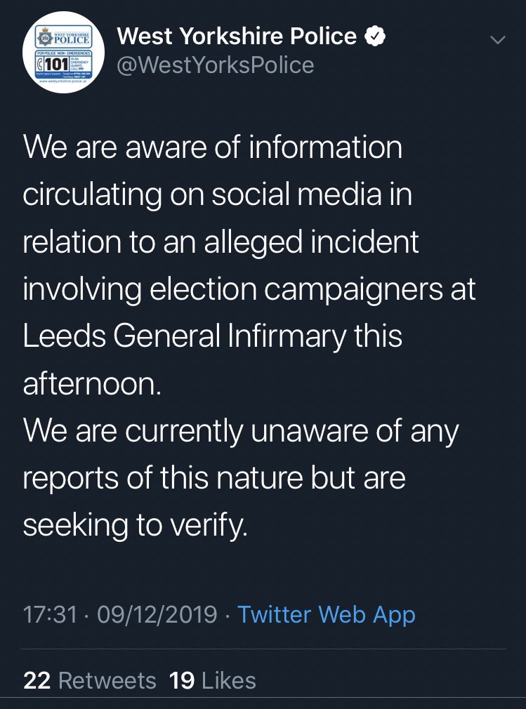 “One of them punched Hancock’s adviser” “Not entirely clear what happened” One of these messages is going to get shared a lot more than the other after being tweeted out in haste by a reporter not on the scene.pic.twitter.com/YJSMYzU2xe