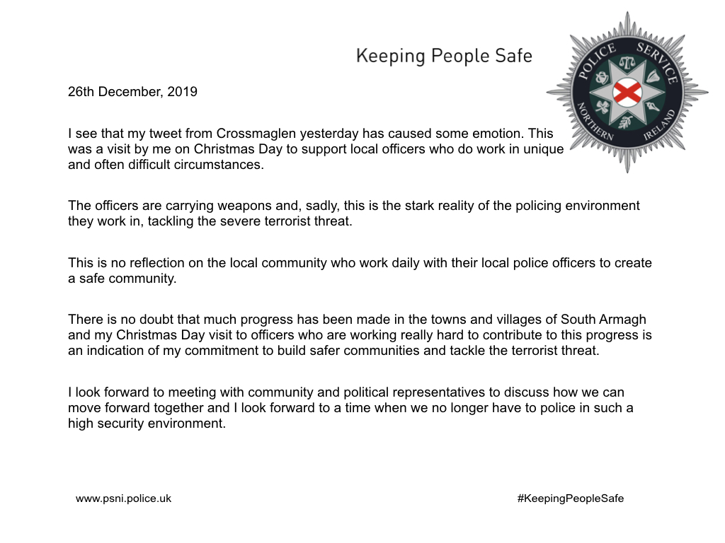 Incredible opening linehttps://twitter.com/ChiefConPSNI/status/1210261749548617729 …