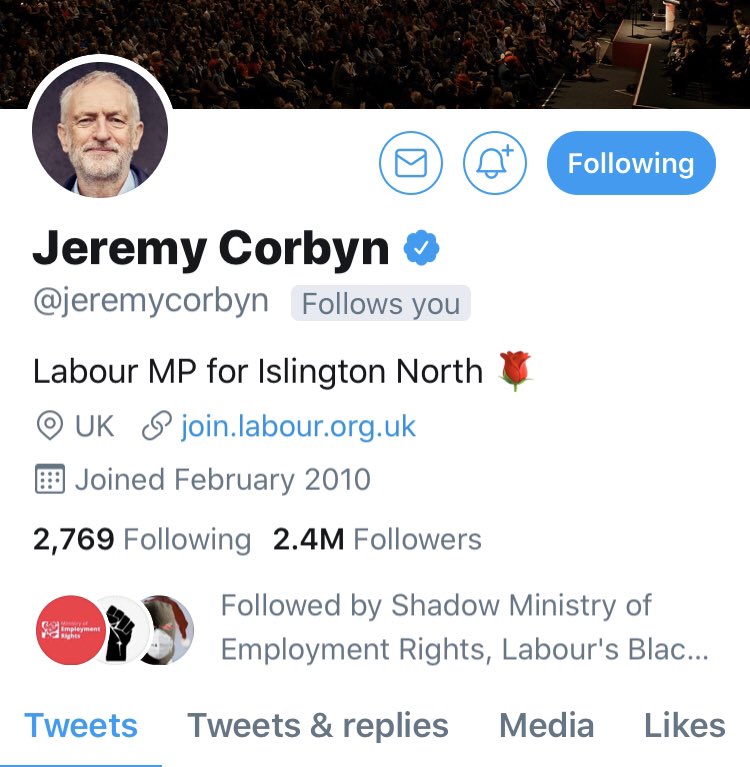 Howling at all the senior journos screen-grabbing Corbyn’s bio change whilst revealing he doesn’t follow thempic.twitter.com/DrEDJFFlSs