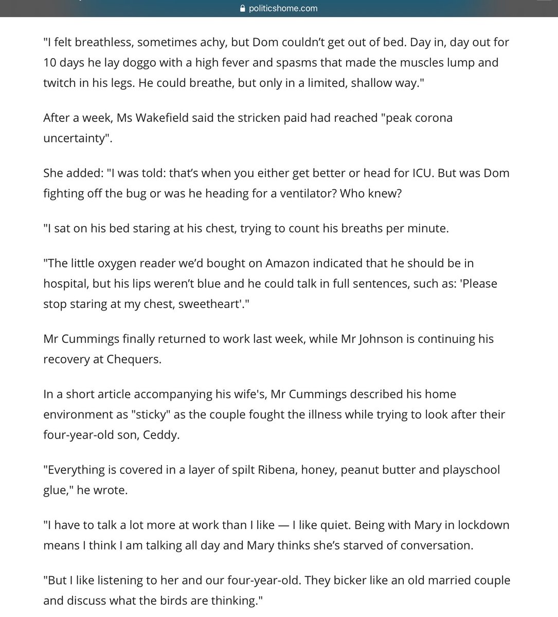 I’ve been very ill in the past, and don’t think I’d have driven 250 miles twice in that condition https://www.politicshome.com/news/article/dominic-cummings-collapsed-and-was-in-bed-for-10-days-after-contracting-coronavirus-wife-reveals …pic.twitter.com/DaLj4sfMii