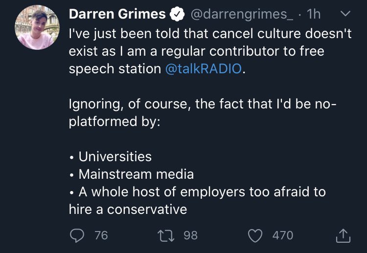 Was honestly amazing to have him tell me on air that universities won’t have Tory speakers, when the “left” panel at the last event I did at Cambridge was me and *Malcolm Rifkind*