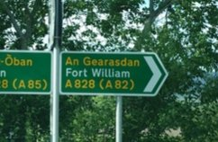 Forgetting for a minute how clear the English is on the sign. I'm also amused that she figured out that An Gearasdan means Fort William yet couldn't figure out that following signs to An Gearasdan would lead her to Fort William.