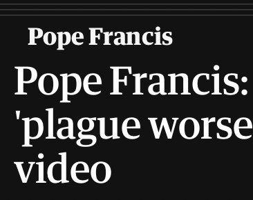 Pope Francis: gossip is 'plague worse than Covid' – video https://www.theguardian.com/world/video/2020/sep/06/pope-francis-gossiping-is-plague-worse-than-covid-video?utm_term=Autofeed&CMP=twt_b-gdnnews&utm_medium=Social&utm_source=Twitter#Echobox=1599406108 …