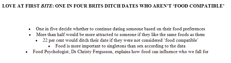 i am fascinated by this survey which says people bin dates based on their food preferences - would you ditch a date if you weren't cuisine compatible?pic.twitter.com/akkg9YFZ5F
