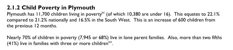 Not to mention in Plymouth poverty levels for children are at 1 in 3.