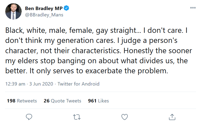 Think a lot, whenever he pops up mouthing off, about the fact that Ben Bradley is the chair of the “working class” Blue Collar Tory group despite going to private school and being unbelievably posh.