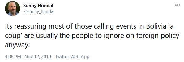 The centrists and right wingers who celebrated the coup and attacked leftists who supported Morales as idiots who knew nothing about Bolivia have been awfully quiet, and really have no right to be.