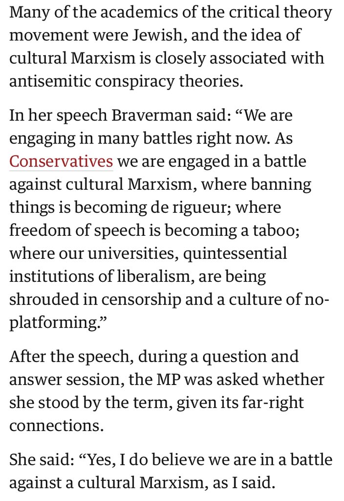 Can’t believe I have to keep saying this, but “Cultural Marxism” is an antisemitic conspiracy theory that the Times shouldn’t be printing & many Tory MPs shouldn’t be using. I’m the journo that mentioned the link to Anders Breivik below - she didn’t care: https://www.theguardian.com/news/2019/mar/26/tory-mp-criticised-for-using-antisemitic-term-cultural-marxism …pic.twitter.com/TWaBMdIXE6