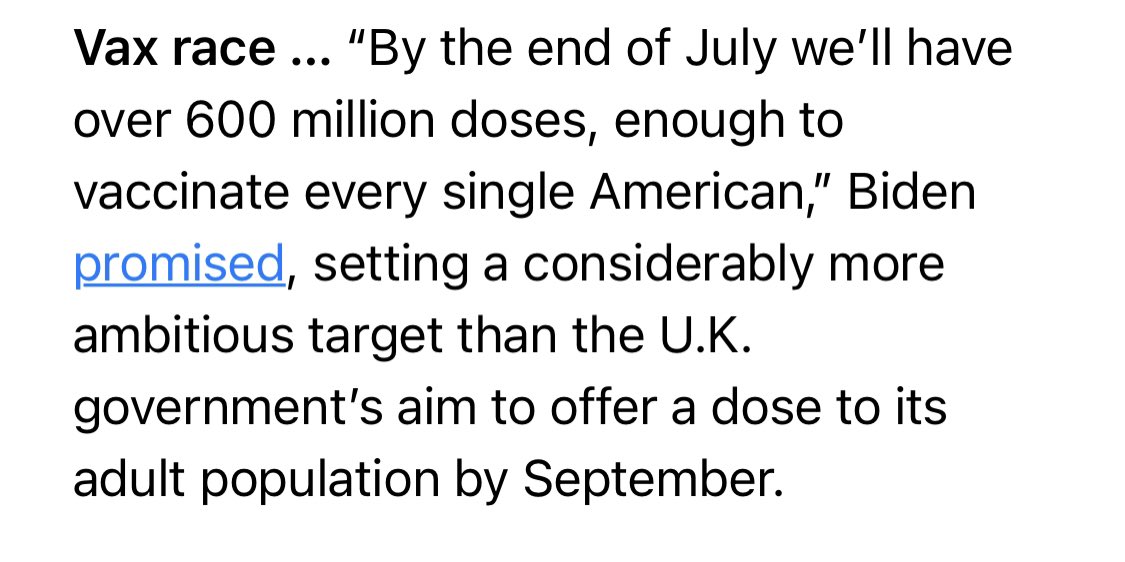 That's a big number I'm not sure you can compare them directly like that, since one is about having the doses and the other is about giving the doses. You could hit your target for having them but still be doing badly on getting them administered.