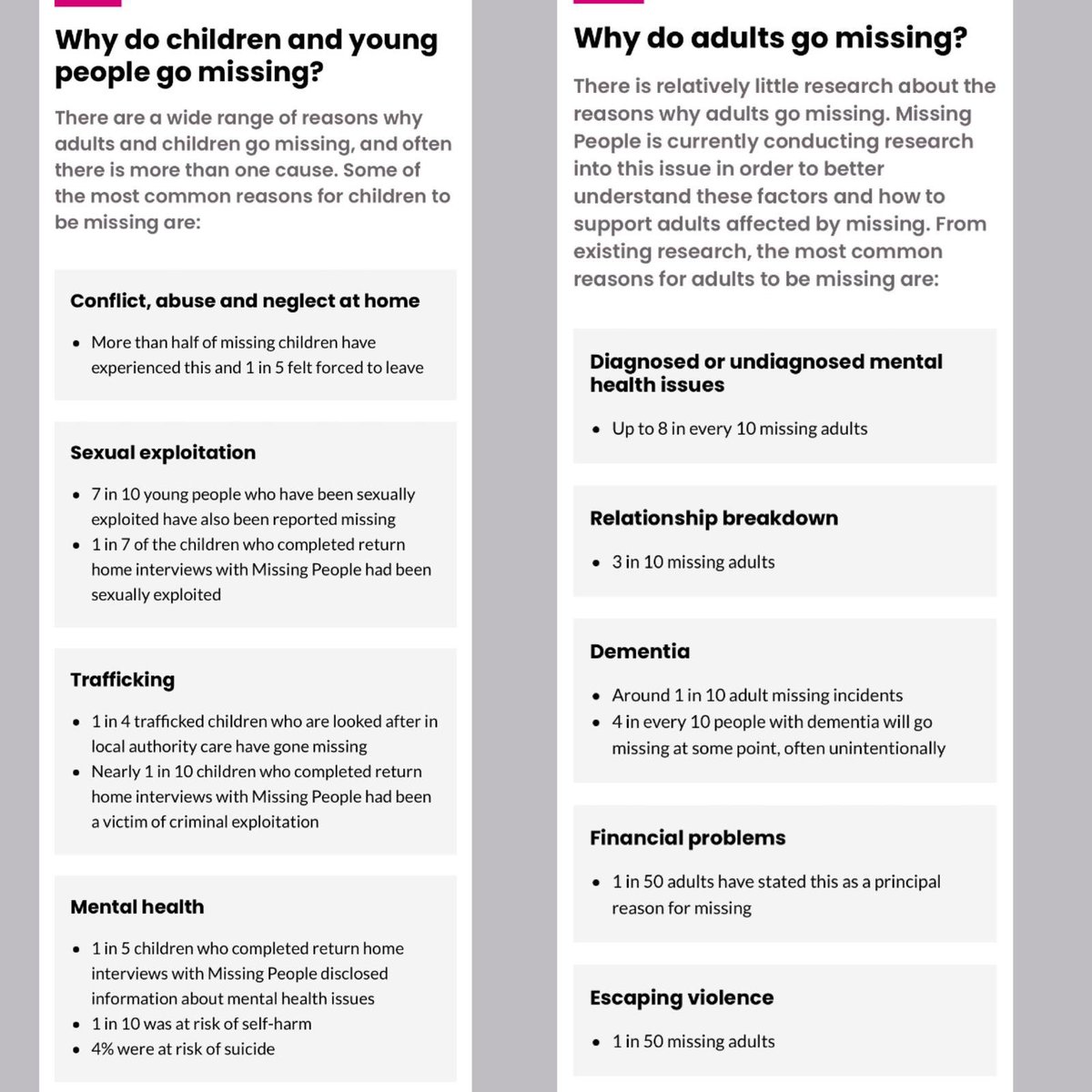I ran away from home a lot in both primary & secondary school, sleeping rough rather than go home, if my stepdad found me before the authorities did I’d have been in massive danger. People use these tactics to track down people escaping abuse. Please use police reference numbers.