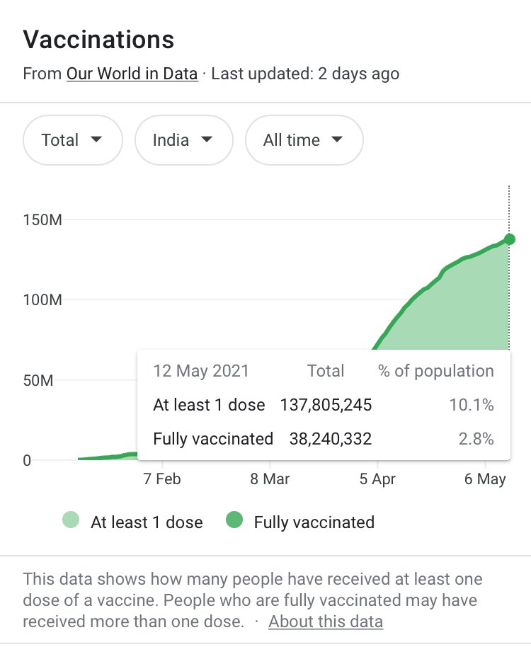 India has the Serum institute which produces vaccine. Currently India has vaccinated a 1 shot jab of 10.1 % of its population. The key issue for India has been lack of oxygen.pic.twitter.com/ypgBjoVbrb