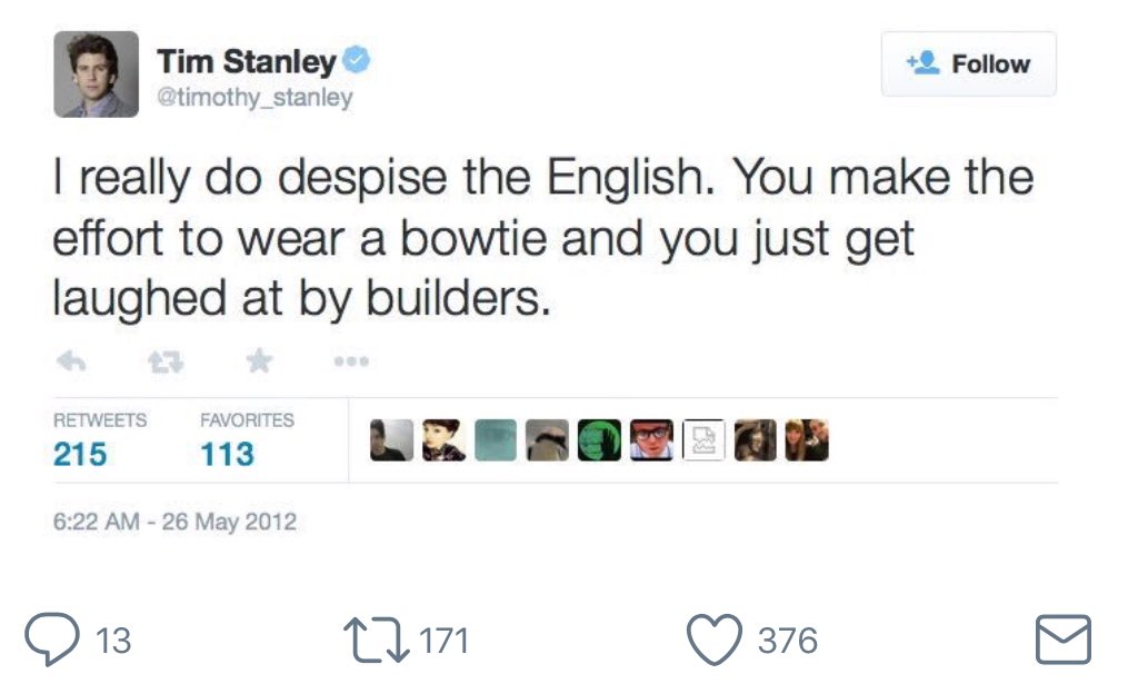 Where's his fucken bowtie, are some builders nearby? https://twitter.com/erlosungen/status/917167328646828032 …