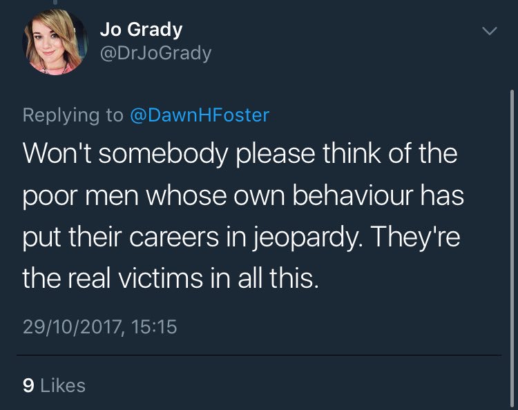 Oh and @DrJoGrady is being sarcastic before some tedious man I don't follow says "I agree"