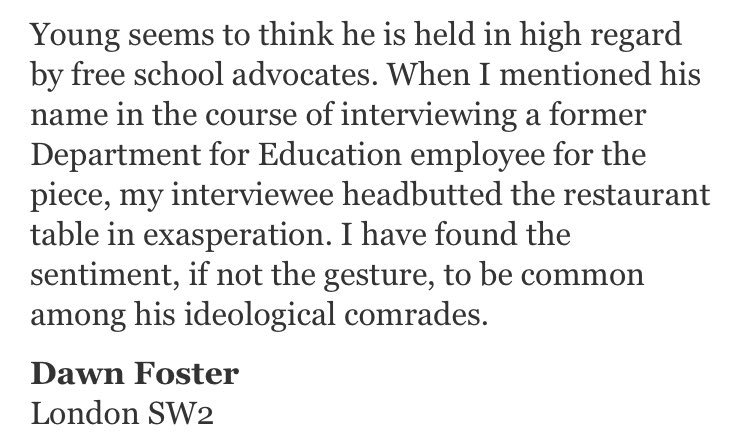 Old piece on free schools, including me and Toby Young sparring in the letters underneath https://www.lrb.co.uk/v37/n09/dawn-foster/free-schools …pic.twitter.com/LgHZ8PPAm4