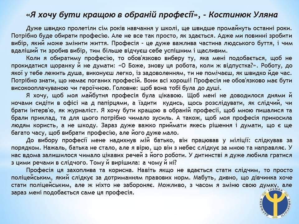 У ВИЖНИЦІ ВІДБУЛАСЯ АКЦІЯ «ВИПУСКНИК» Сьогодні понад 70 учнів 9-11 класів долучилися до акції «Випускник», яку організували фахівці служби зайнятості. У м. Вижниця працював мобільний центр професійної орієнтації.