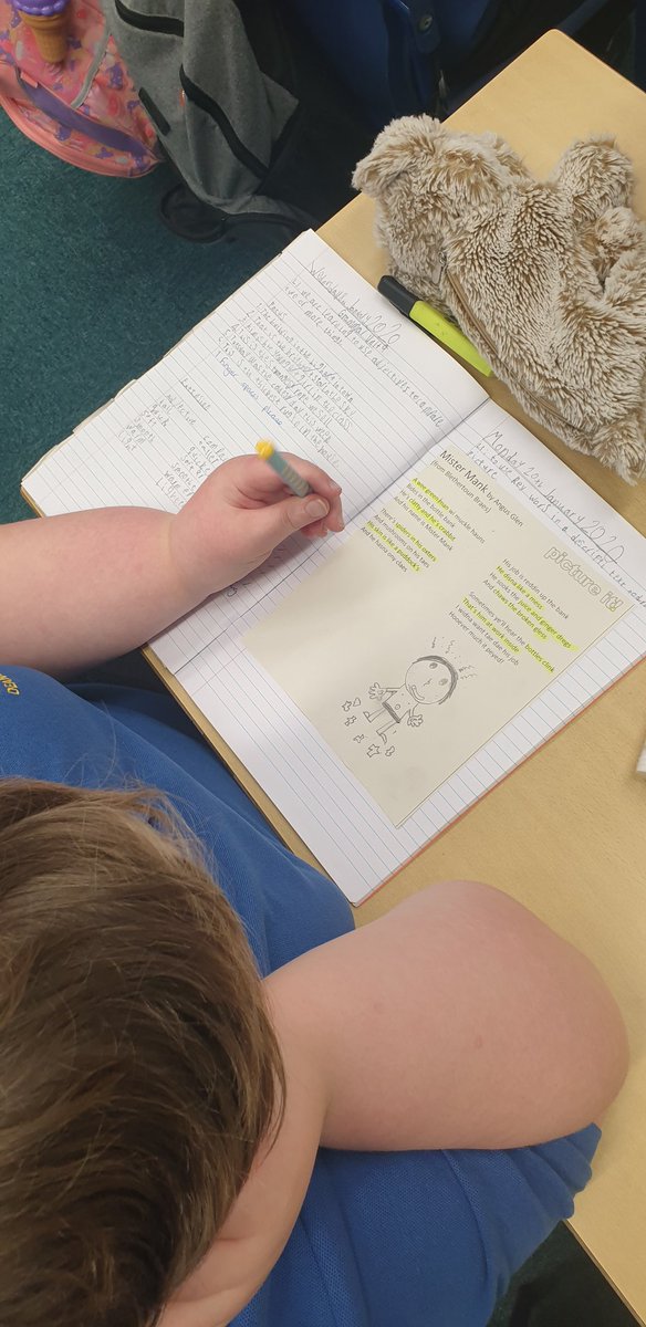 For our short read today we looked at "Mister Mank". We had to highlight key words in the text then use them to draw a picture.