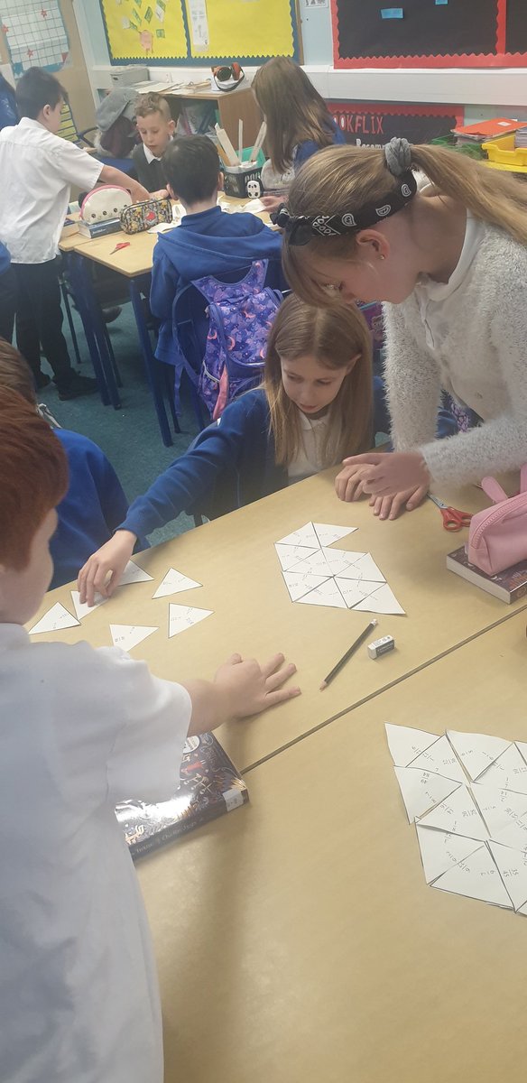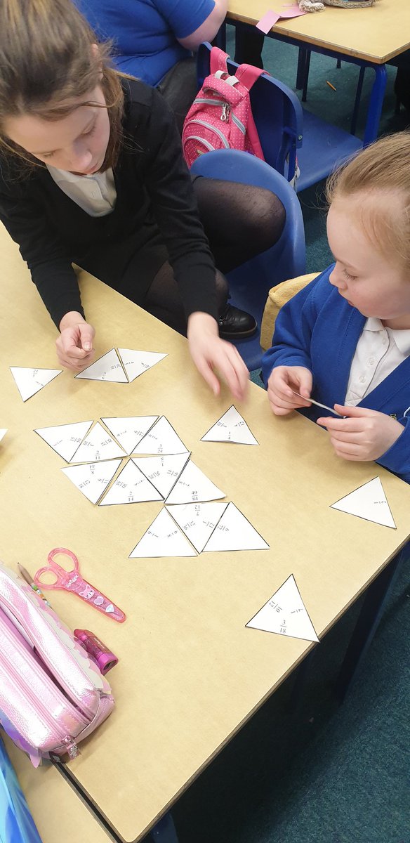 We worked together in pairs today focusing on simplifying fractions. We used our knowledge of this to match different fractions together to make a shape.
