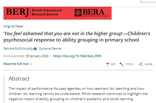 Some research has also highlighted the negative impact on higher ability students who are expected to 'know' and as such feel under a lot of pressure. There is concern that we are not meeting these students' needs in Ireland but we *have* to be extremely careful how we do this.