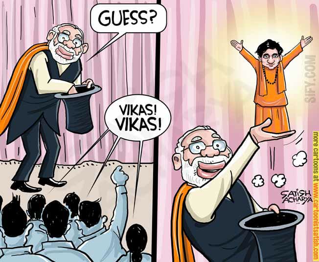 BJP's campaign: Kejriwal is terrorist Rahul Gandhi is a Muslim Muslims are traitors Protestors are anarchists Students are urban naxals Intellectuals are anti-national Hindus are in danger India is in danger Opposition consists of weaklings Modi is strong Modi is your saviour.