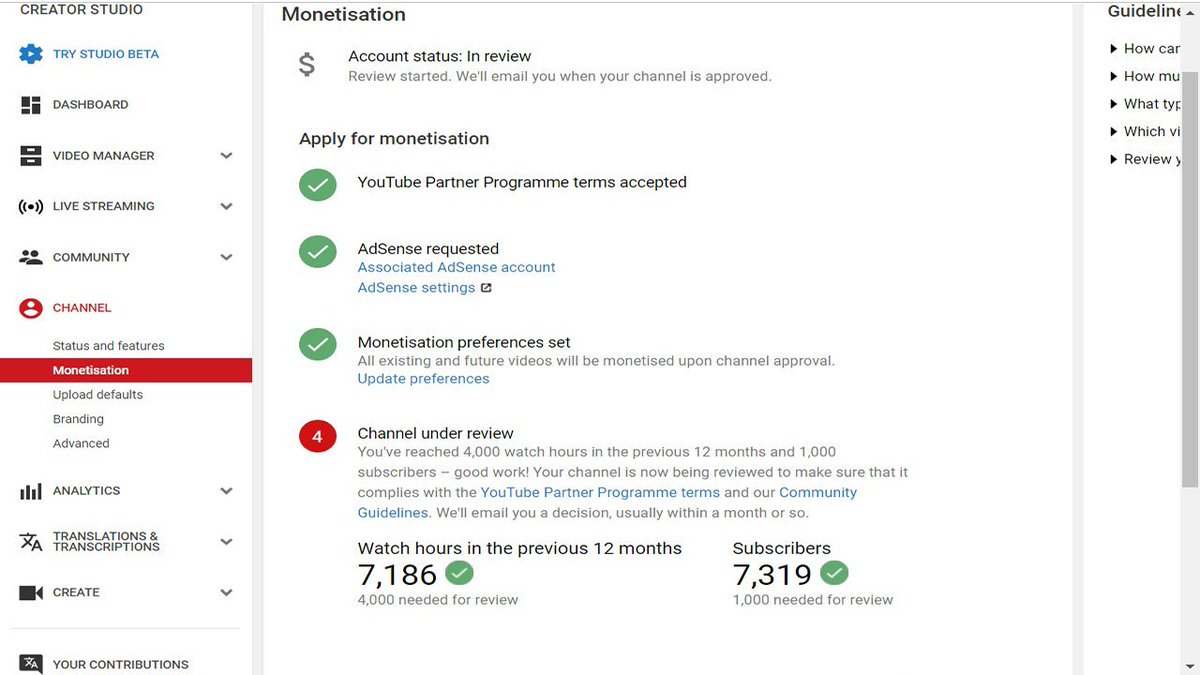 Dear Youtube Team I always got reply from u that my channel is under review & u will review it soon but after 1 and half year still i am waiting plz review it i need monetisation i shall be very thankful to u. channel link is here https://www.youtube.com/account_monetization?ar=3 …pic.twitter.com/BoGYiltG7l
